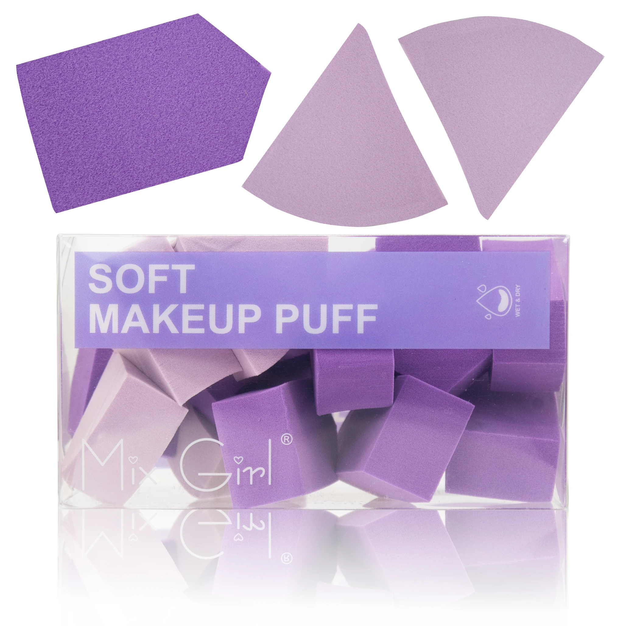 Esponja de maquillaje suave para aplicar y difuminar base y corrector. Usarla húmeda ayuda a un acabado más natural.