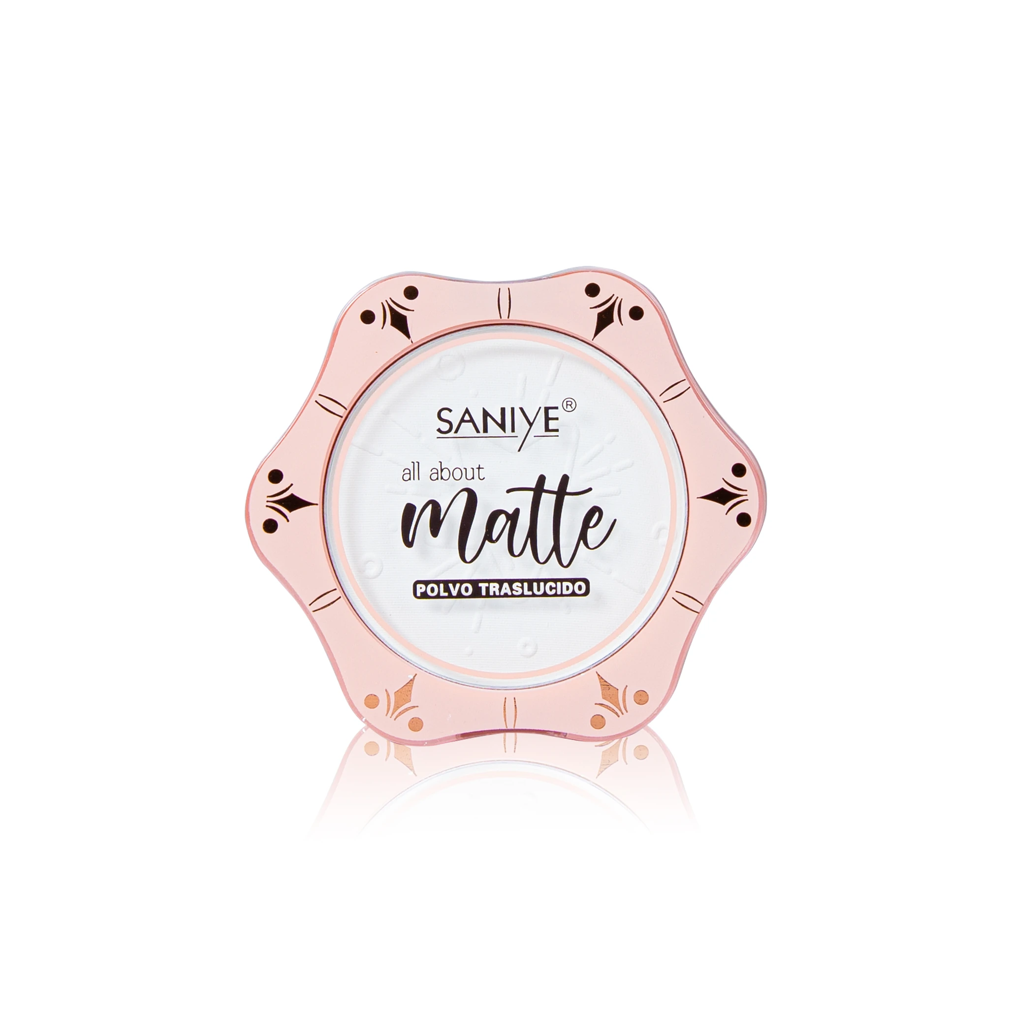 Polvo traslúcido SANIYE (tono único) para sellar base y corrector, matificar y controlar brillo.