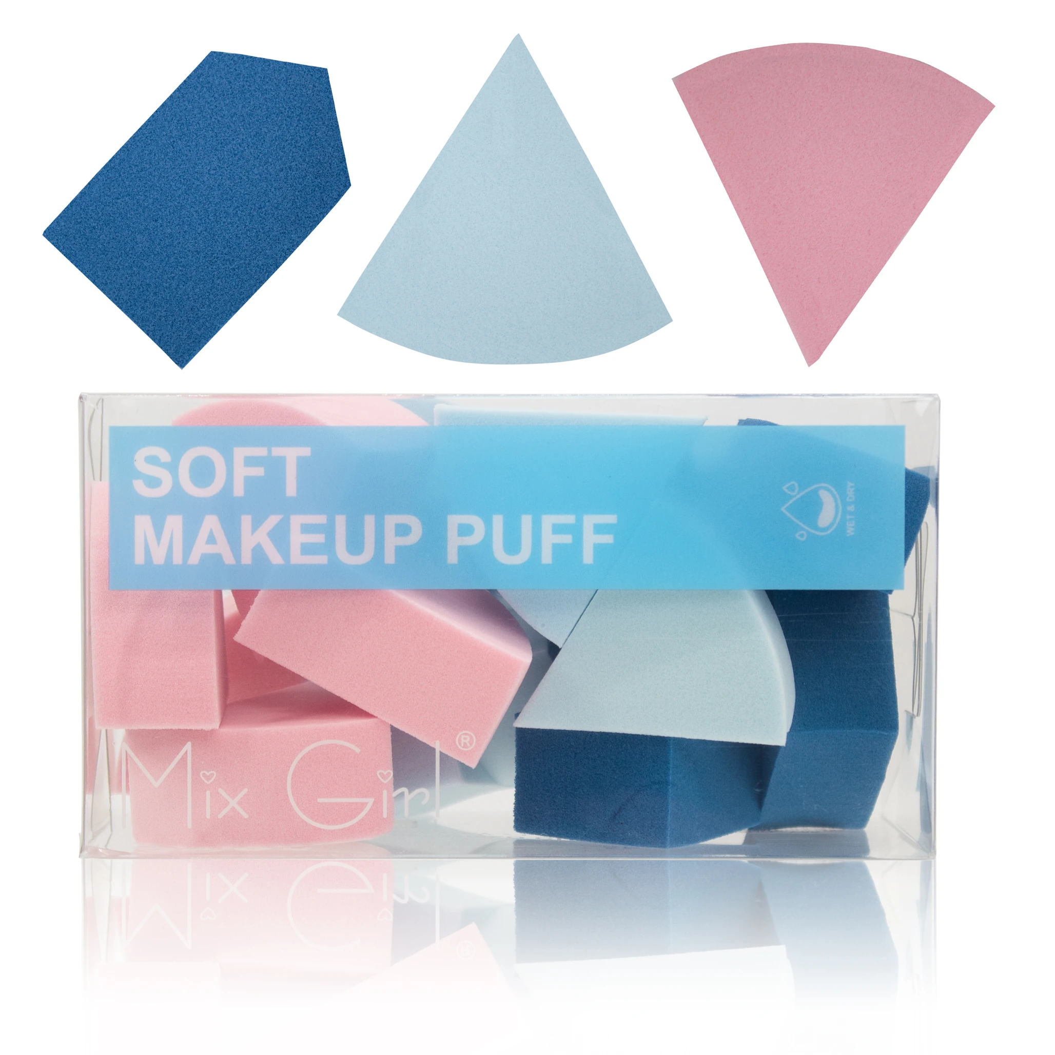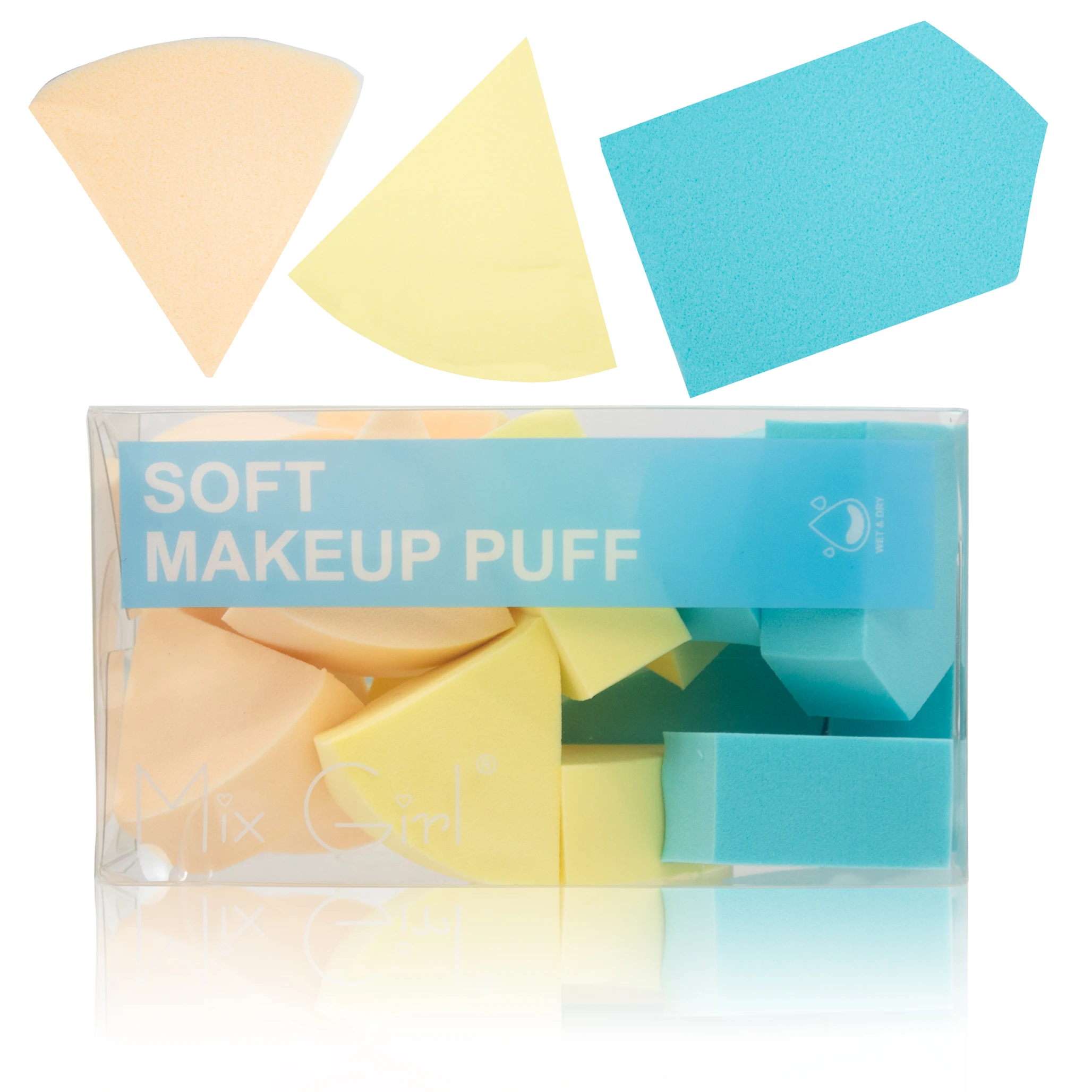 Esponja de maquillaje suave para aplicar y difuminar base y corrector. Usarla húmeda ayuda a un acabado más natural.